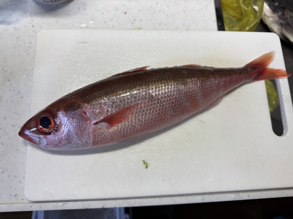 検索してみると身が赤いけど白身魚らしく、美味しいらしい、。
