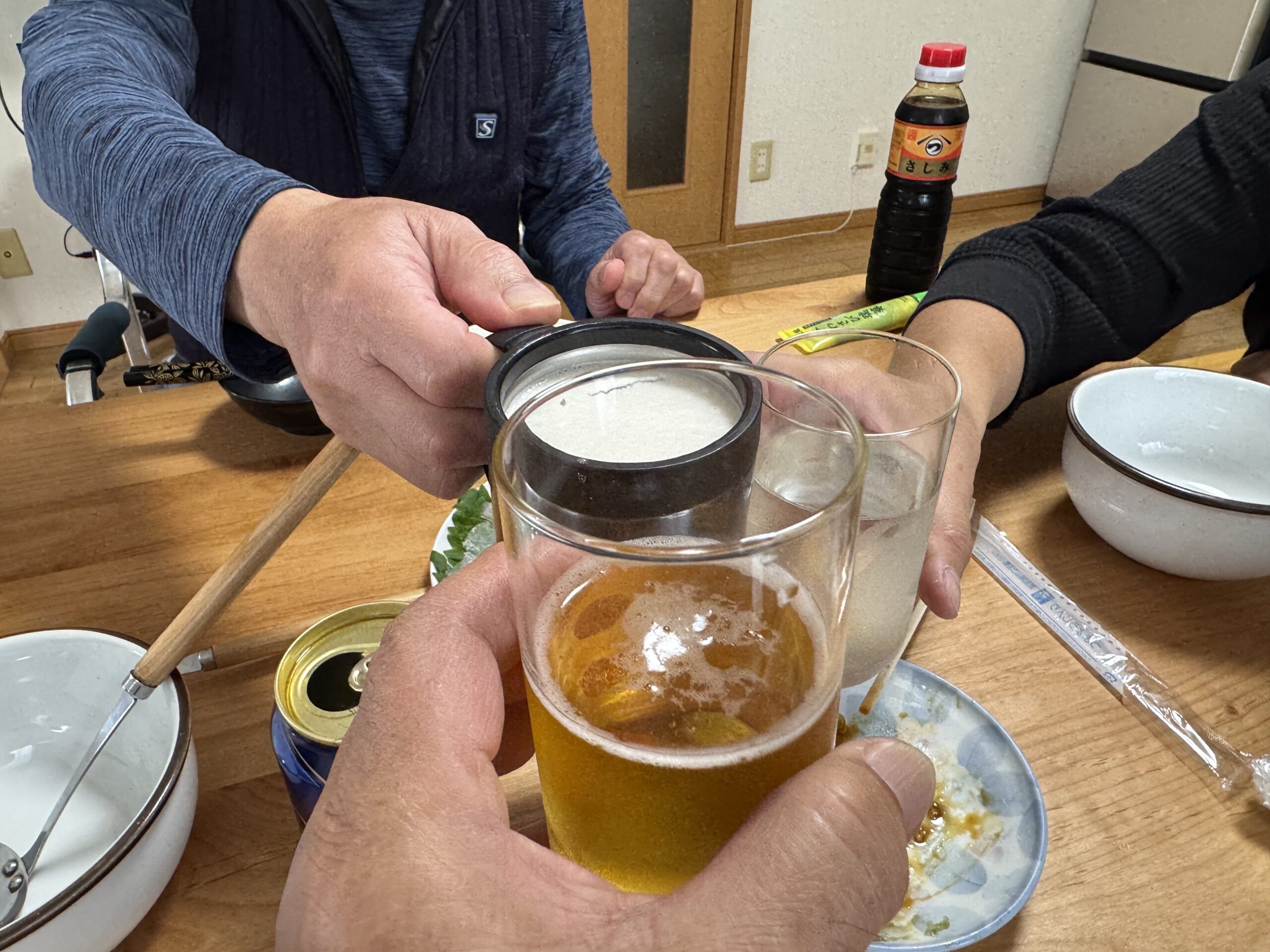 2日目はお昼に上がった理由が、お昼はウチでフグ鍋しようと、佐々木さんが誘ってくれました。