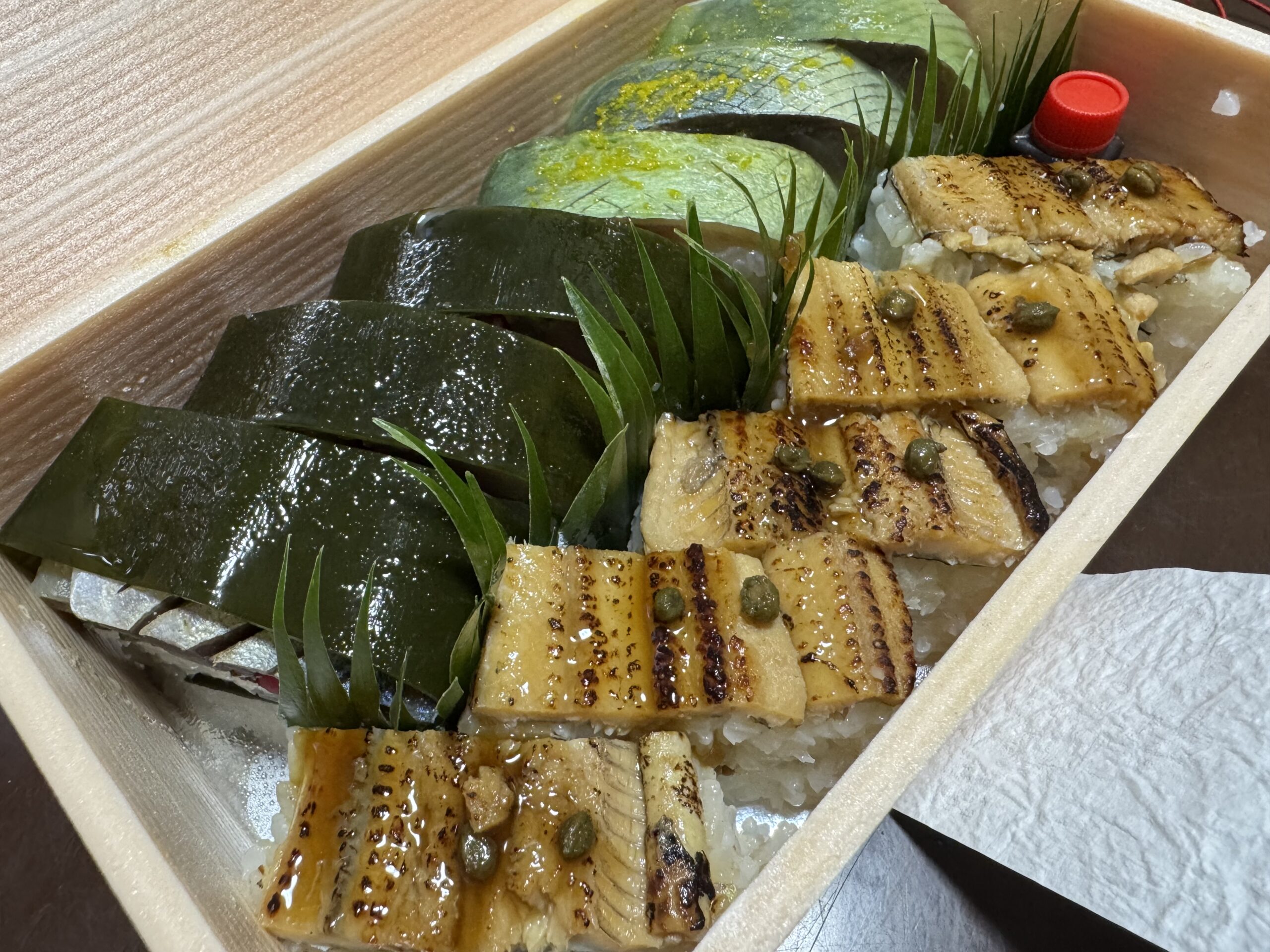 中山さんが京都からわざわざ持ってきてくれた押し寿司で晩御飯。