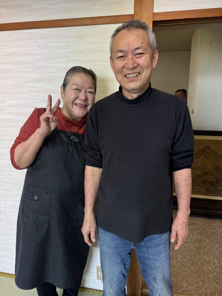 やま栄の船長と同級生の美浦荘の主人とお女将さんの2ショット。