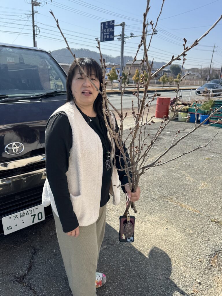 メダカ10尾を袋詰めしてもらって、桜の切り枝も数本いただきました。