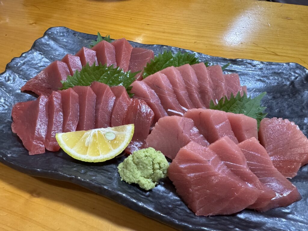 夜は宿毛人の佐々木さんと宿毛の離れにあるマグロ専門店。