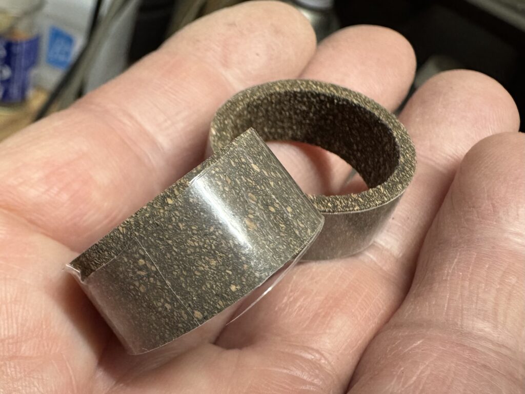 エンドグリップのコンビ作り。 1センチほどでもイイアクセントになります。 新しい削ったばかりのコルクなので、ステインを塗る場合はこのまま2回だけ重ねます。 ベタ付き感がなくなるまで気温によると思いますが、2週間ほどかかりますね。 キシラデコ...