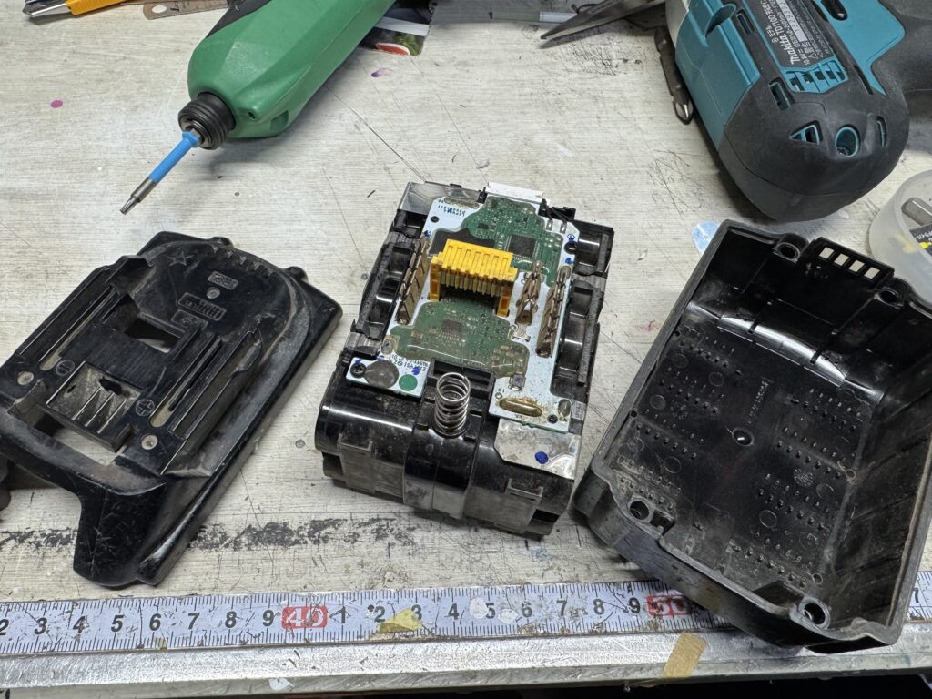 フィッシングエイト2さんのお向かいくらいにある中古工具のお店で、ほぼ新品のバッテリーとジャンクのこれを買って来て、早速分解です。 チューブラーやカーボンパイプなどのカット用に使ってる小型のチップソー。 バッテリータイプを100V電源で使えるよ...